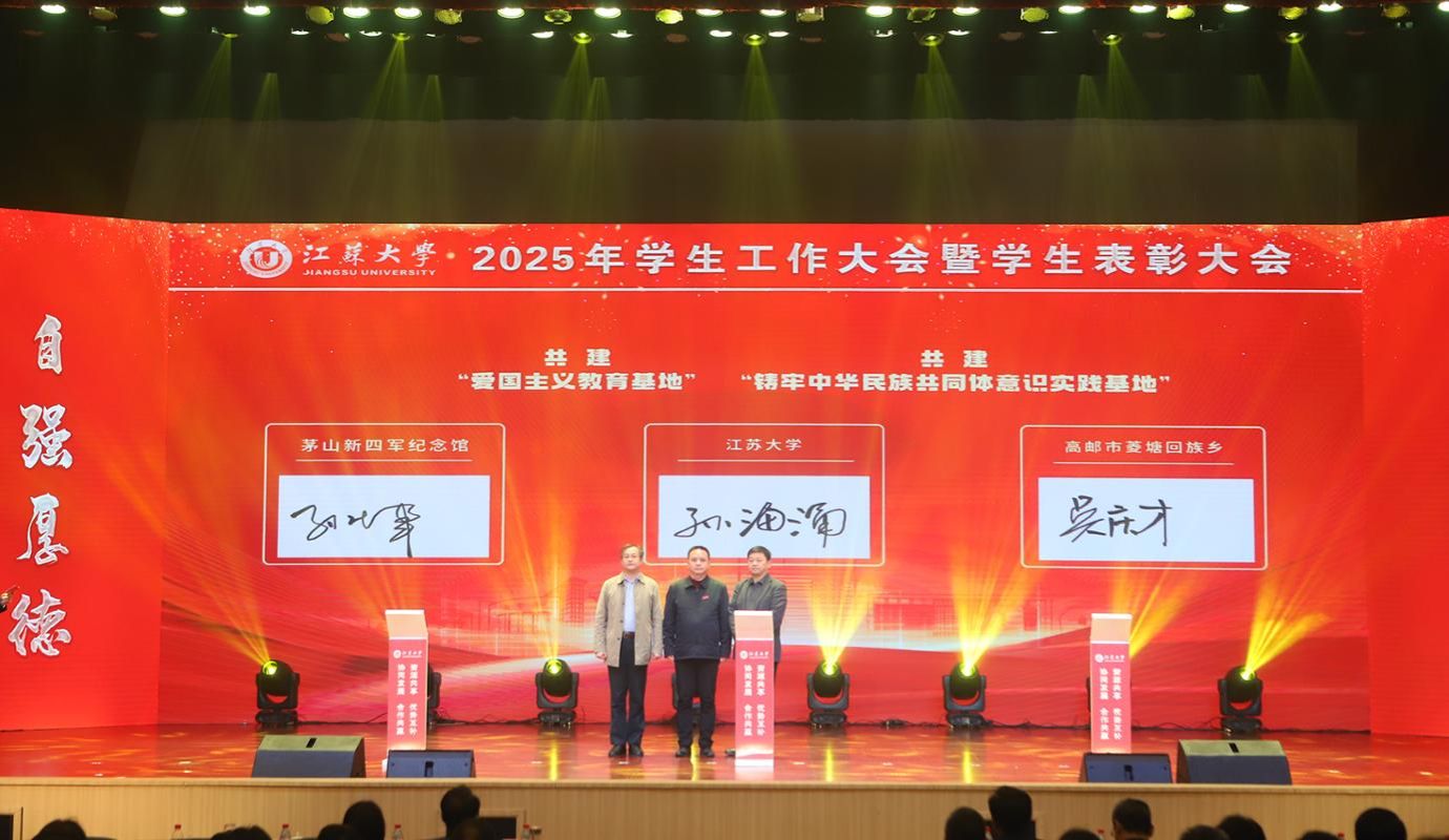 在共建签约环节,任泽中与李永亮签署合作备忘录。党委学生工作部副部长孙海涌与吴庆才、孙志军共同签约,共建铸牢中华民族共同体意识实践基地和爱国主义教育基地。党委学生工作部副部长刘洁与徐工集团、常发集团、鱼跃医疗、奇瑞汽车股份有限公司、小米集团等企业代表共同签约,共建江苏大学“就业育人”实践基地。