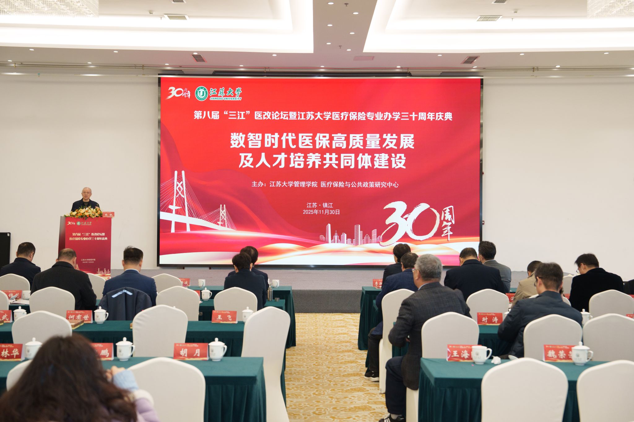 11月30日,第八届“三江”医改论坛暨江苏大学医疗保险专业办学30周年庆典在校举行。校党委书记李洪波,中国医疗保险研究会副会长、国务院参事室特约研究员、国家医疗保障研究院院长娄洪,国家医保局医药管理司原副司长李淑春,国家卫健委卫生发展研究中心医药卫生技术评估与创新发展部部长顾雪非,以及来自全国40余所开设医疗保险相关专业高校的代表、校内外嘉宾、我校医保专业校友和在校师生300余人参加活动。庆典仪式由管理学院院长朱永跃主持。