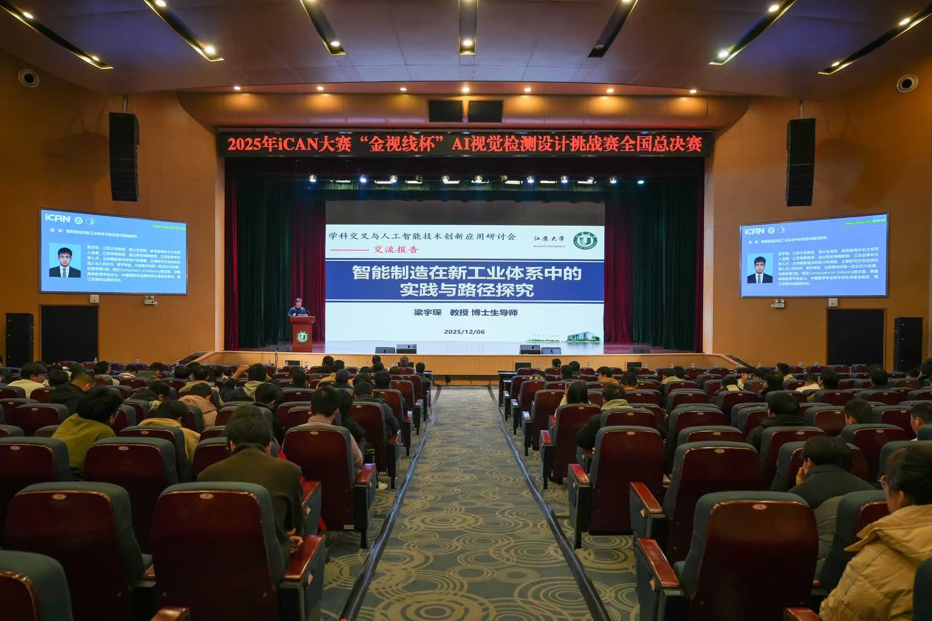12月6日至7日,2025iCAN“金视线杯”AI视觉检测设计挑战赛全国总决赛暨学科交叉与人工智能技术创新应用研讨会在我校举行。活动由iCAN大学生创新创业大赛组委会主办、江苏大学机械工程学院承办、江苏科技大学和杭州金视线科技有限公司协办。