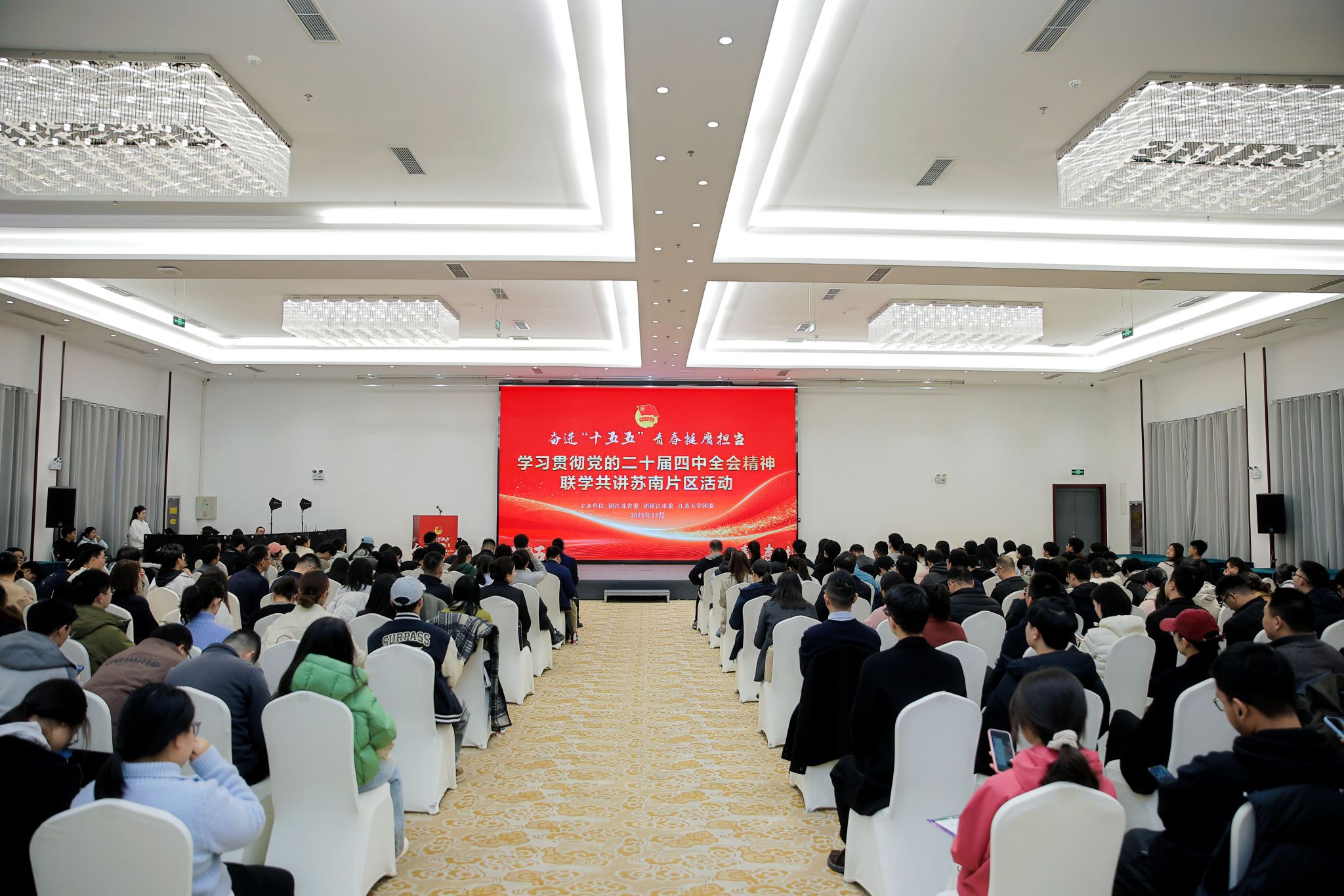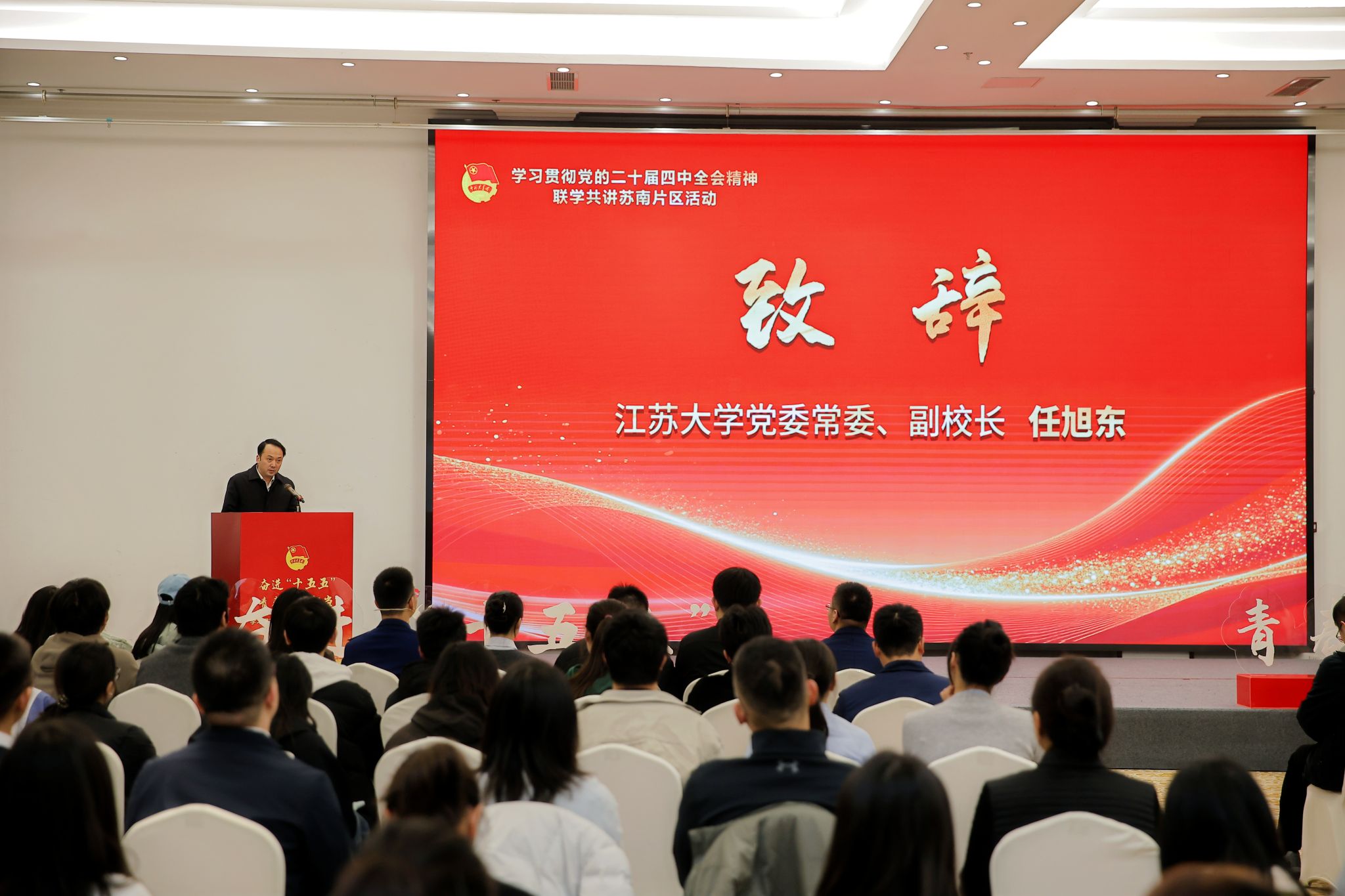 12月9日,学习贯彻党的二十届四中全会精神联学共讲苏南片区活动在镇江举办。活动由团江苏省委、团镇江市委、江苏大学共同主办。团省委副书记翟胜丞,校党委常委、副校长任旭东,团省委宣传部部长董悦、新媒体发展中心主任孙洪洋,南京、无锡、常州、苏州、镇江等5市团委分管书记、宣传部长,以及青年讲师团代表、团干部代表、青年师生代表等200余人参加活动。