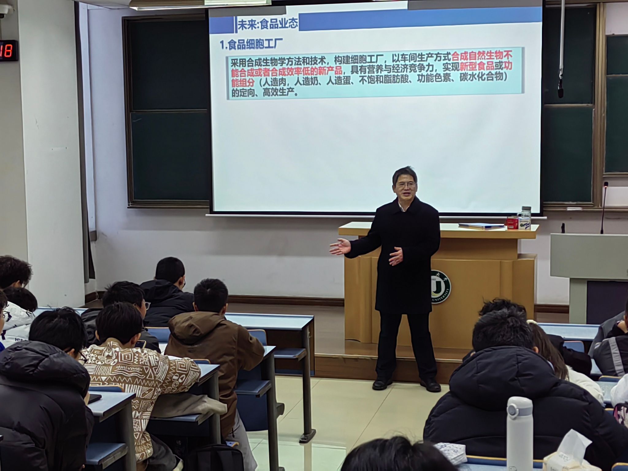 近日,本学期首次开设的校公选课“科技前沿探秘”结课。课程面向全体本科生开放,邢卫红、袁寿其、邹小波、王景全、蔡英凤、梅强等12位相关领域专家担任主讲嘉宾,课程内容涵盖多个科技前沿领域,采用“现场讲授+线上直播”双线融合教学模式,为学生打造跨学科、高规格的科技盛宴。