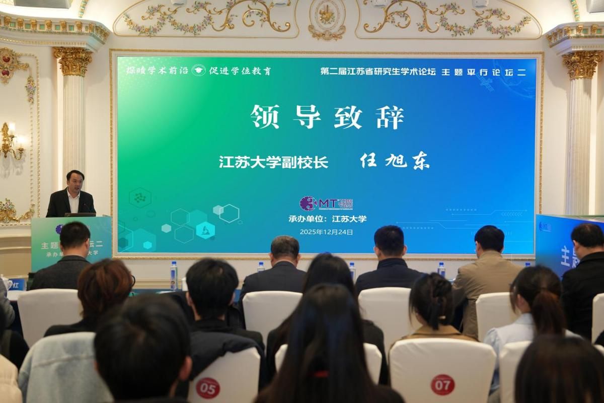 党委常委、副校长任旭东代表学校致辞,介绍了江苏大学的办学历史和发展概况,以及学校近年来在研究生人才培养取得的成绩。任旭东指出,研究生作为高层次创新人才的储备力量,肩负着传承学术薪火、服务国家发展的时代重任,希望同学们以论坛为契机,找准学术研究与社会发展的结合点,让青春才智在服务江苏高质量发展中绽放光彩。