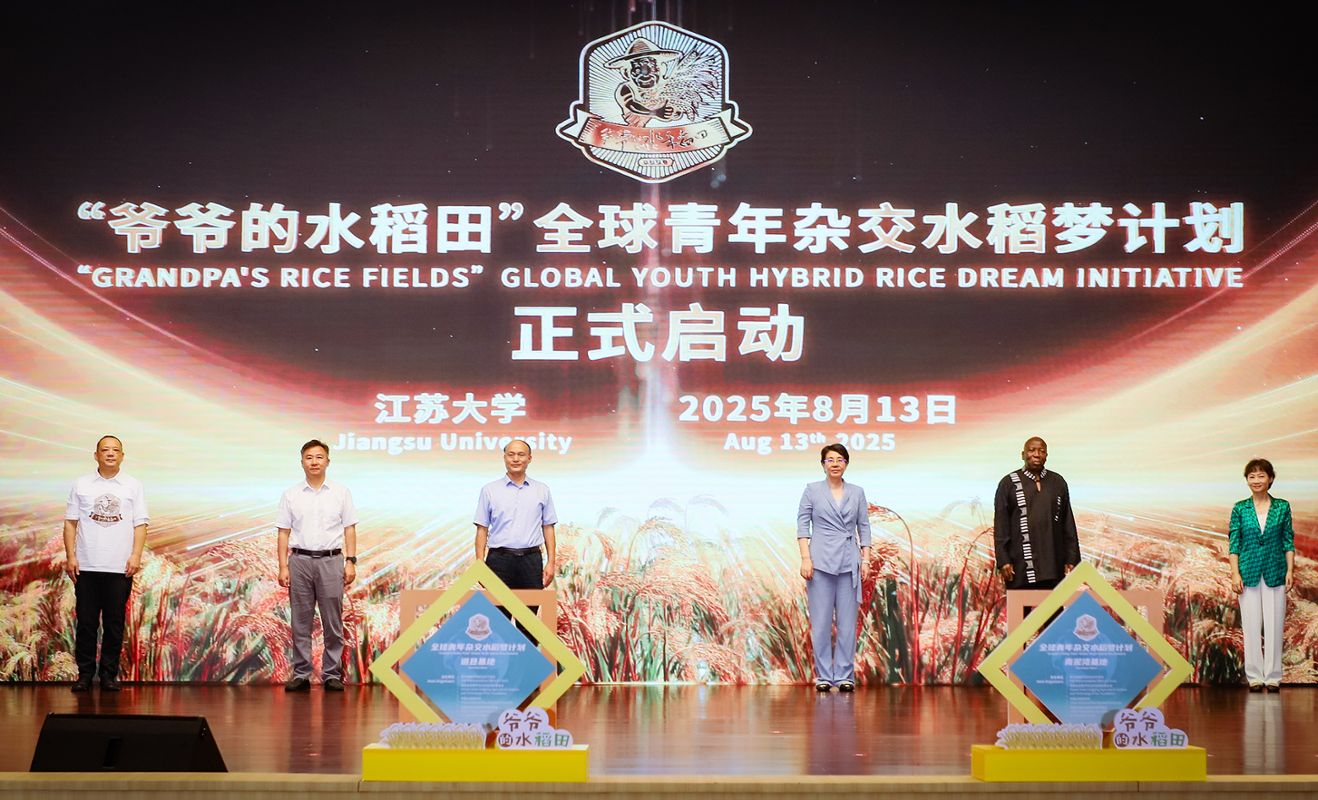 10.“爷爷的水稻田”全球青年杂交水稻梦计划启动。2025年8月13日,由联合国粮农组织驻华代表处、湖南省袁隆平农业科技奖励基金会、中国水稻研究所与中国作物学会特用作物专业委员会联合主办,江苏大学承办,联合国工业发展组织全球农业现代化与食品教育培训中心、中国农业国际合作促进会“一带一路”农业发展办公室共同协办的“爷爷的水稻田”全球青年杂交水稻梦计划在我校启动。会议发布《全球青年杂交水稻梦倡议书》,重点构建“袁隆平精神全球青年巡讲计划”“人类丰收艺术年鉴”“全球青年水稻创新报告”三大特色板块,以青春之力为人类反饥饿事业贡献力量。活动被中华人民共和国常驻联合国粮农机构收录。