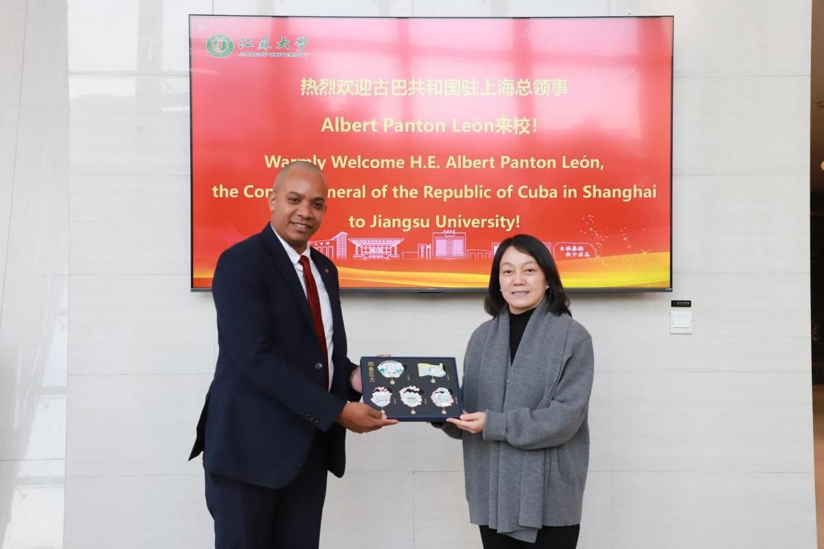 1月22日,古巴共和国驻上海总领事馆总领事艾伯特·潘顿·莱昂一行来访我校。副校长陈红会见了来宾,国际合作与交流处相关负责人参加会见。