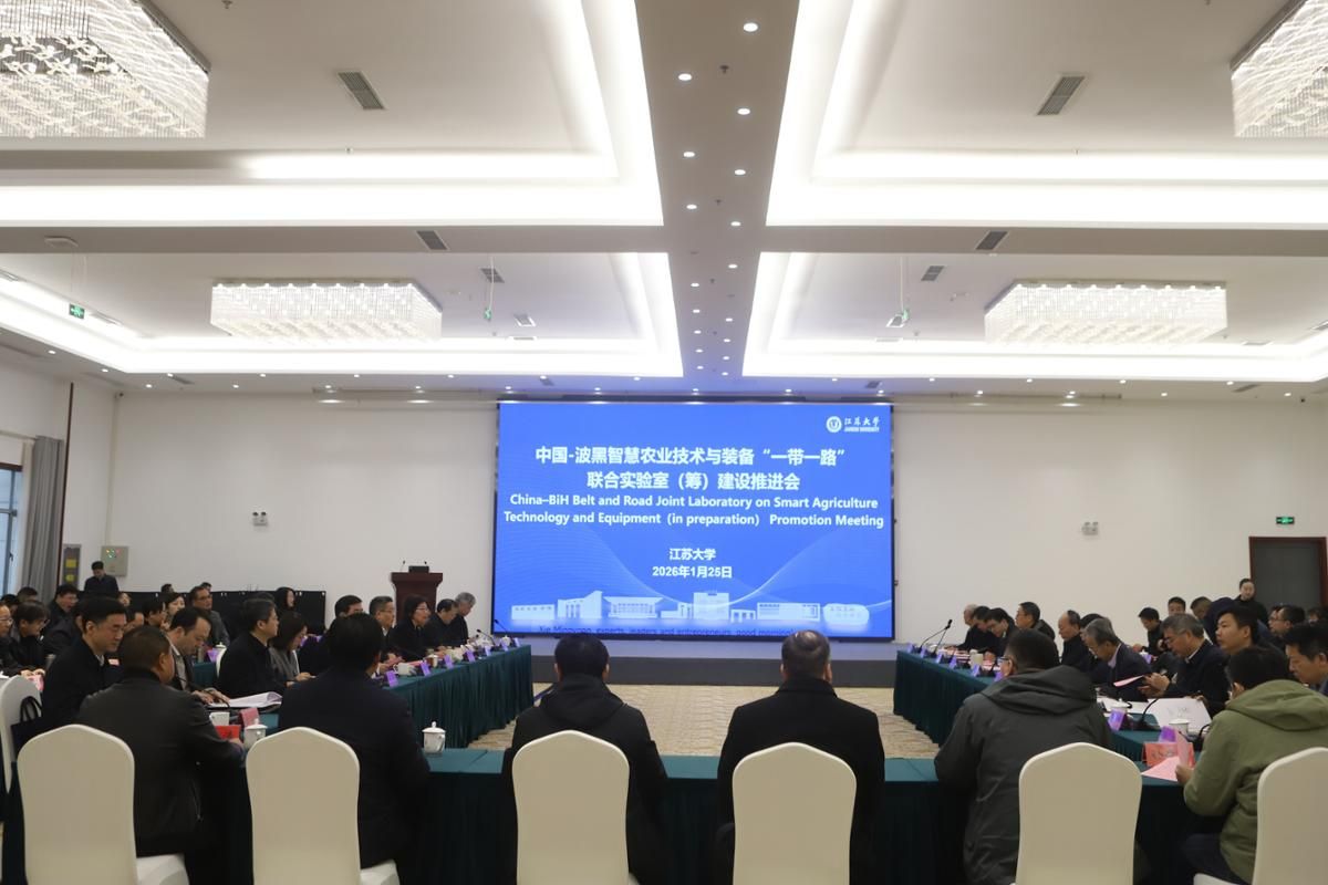 1月25日,中国—波黑智慧农业技术与装备“一带一路”联合实验室(筹)建设推进会在学校举行。中国工程院院士、国家农业信息化工程技术研究中心主任赵春江,中国工程院院士、江南大学陈坚,中国工程院院士、南昌大学谢明勇,中国农业机械化科学研究院总工程师方宪法,农业农村部南京农业机械化研究所副所长曹光乔,江苏大学研究员袁寿其,暨南大学中国—马来西亚油脂加工与安全“一带一路”联合实验室主任汪勇,中国—莫桑比克智慧农业“一带一路”联合实验室副主任解雪峰,江苏沃得农业机械股份有限公司副总经理胡必友,潍柴雷沃智慧农业拖拉机研究院副院长张鹏,镇江市科学技术局副局长陈群峰;江苏大学党委书记李洪波,党委副书记杨道建,副校长陈红,党委常委、副校长邹小波、王景全、任旭东、郁明华出席会议。会议由党委常委、副校长李红主持。