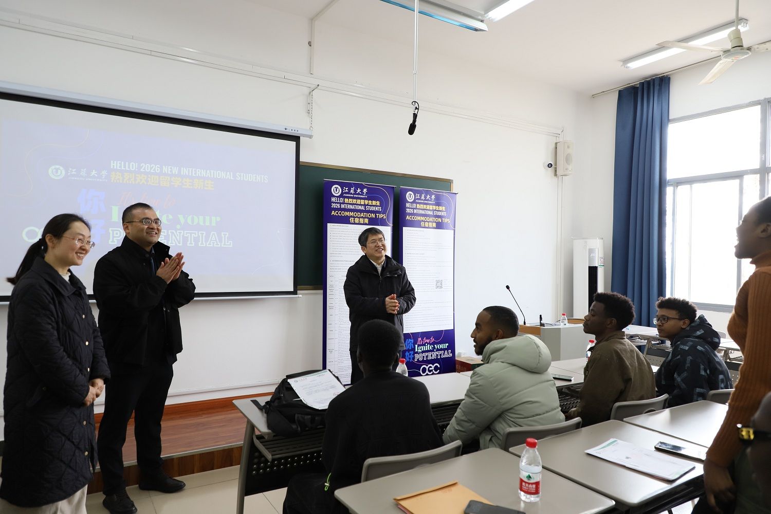 邹小波关切地询问留学生新生初到中国的感受与适应情况,表示江苏大学有着良好的国际化育人环境,始终致力于为来华留学生提供优质的教育资源与良好的学习生活环境,勉励留学生新生尽快融入校园,珍惜在华求学的宝贵时光,在深入了解中国、感知中国的同时,刻苦钻研专业知识,努力成长为推动文明互鉴、促进中外友好的青年使者。
