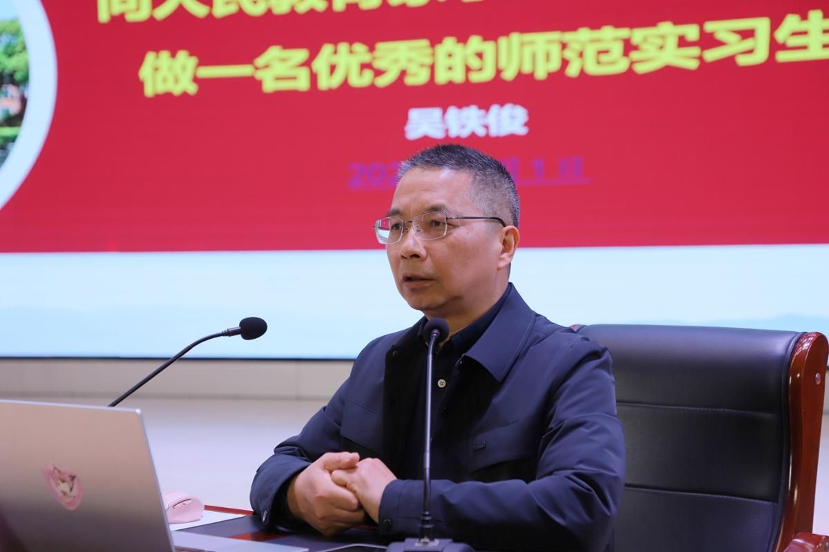 大会第二阶段,吴铁俊作《如何成为一名优秀的师范实习生》专题讲座,围绕教育初心与AI时代教育变革,为实习生提升综合实践能力提供指导。