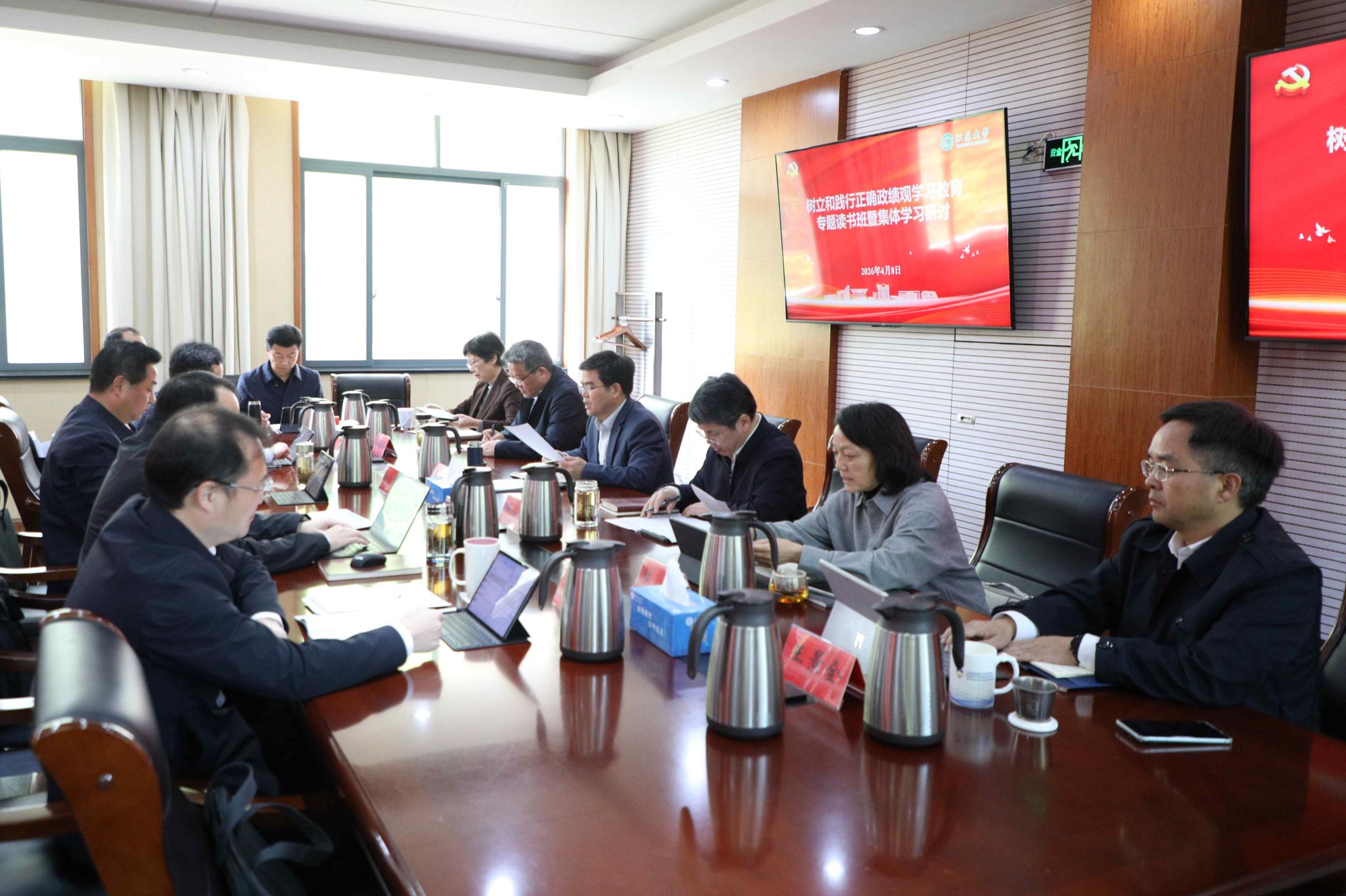 4月8日上午,学校党委领导班子成员在行政一号楼201会议室围绕树立和践行正确政绩观开展专题读书班和集体学习研讨。集体学习研讨由校党委书记李洪波主持。