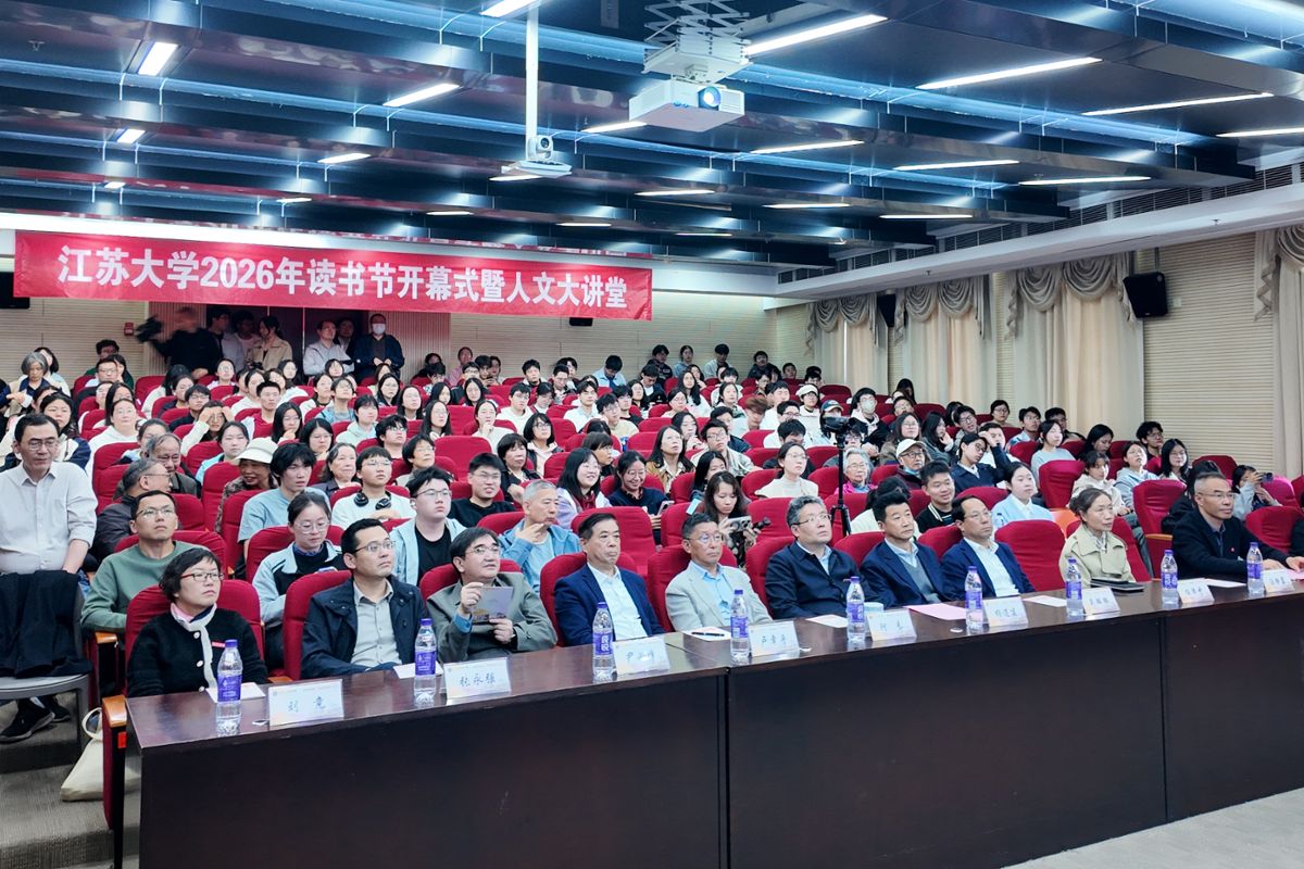 4月15日,以“拾光执卷 阅进江来”为主题的江苏大学2026年读书节开幕式暨人文大讲堂在图书馆一楼报告厅举行。校党委副书记杨道建,镇江市赛珍珠研究会会长卢章平,校党委常委、宣传部部长、统战部部长吴麟麟,以及教务处、学工处、团委、关工委等单位负责人出席开幕式。本次开幕式还特别邀请了中国作协副主席、四川省作协主席阿来先生作主旨讲座。来自全校各学院的近300名师生参加开幕式。开幕式由图书馆党委书记、馆长张明平主持。