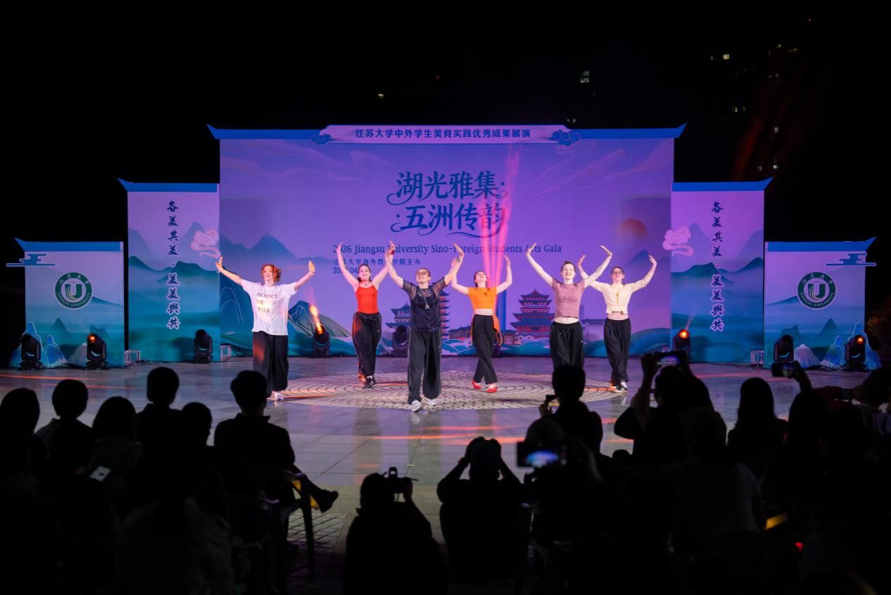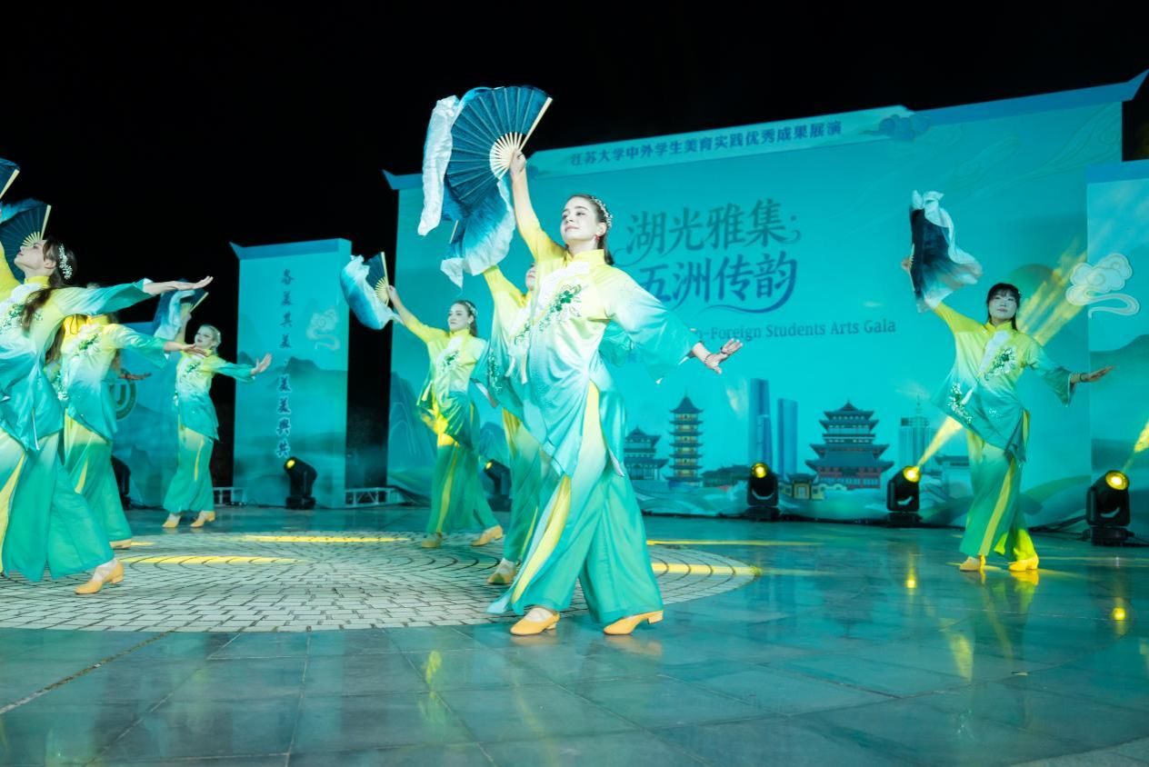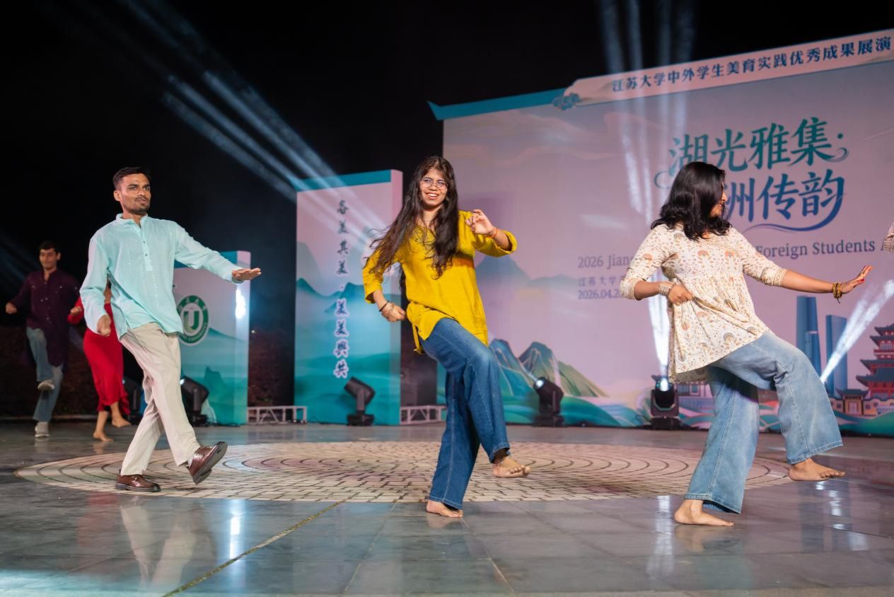 展演在中外学生乐队的演奏中拉开序幕。在第一篇章“润州情”中,印度学生带来舞蹈《天竺乐舞,悦满镇江》,以灵动舞姿展现异域风情,诉说中外相知的美好图景;情景剧《了解文化从美食起》通过利比里亚、俄罗斯、中国学生的生动演绎,讲述通过美食了解镇江、爱上镇江的故事;歌曲与旗袍秀《归乡》由中外学生联袂呈现,表达对镇江第二故乡的眷恋;中外学生用中文吟诵张若虚经典诗篇《春江花月夜》,体悟时空与生命的意义,理解中华传统人文情怀与家国相思。第二篇章“江南风”,俄罗斯学生的现代舞《美好的日子》,演绎了诺贝尔文学奖得主赛珍珠在镇江度过的温暖童年与青春岁月,致敬赛珍珠视镇江为“中国故乡”的深厚情怀;朗诵《异乡人的读“苏”笔记》分享了多国留学生对江苏风土人情、城市魅力的美好感悟;扇子舞《水韵山河》以折扇开合展现江南水乡的柔美与山河壮阔。在第三篇章“华夏韵”中,所罗门群岛、瓦努阿图学生舞蹈《海岛欢腾,乐享东方》,将南太平洋岛国的热情与活力带到学校;三句半《农机赞》以中国传统曲艺形式介绍了学校“工中有农,以工强农”的鲜明办学特色和独特文化情怀,争创“双一流”的信心和决心;武术表演《天涯共此风》汇聚八国学生,刚柔并济,气势昂扬,展现中华功夫源远流长、刚柔并济的文化底蕴和兼容并蓄、和合共生的精神内核。展演在中外学生合唱《同一个世界》中落下帷幕。