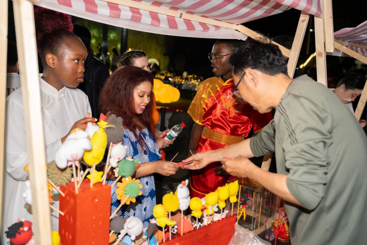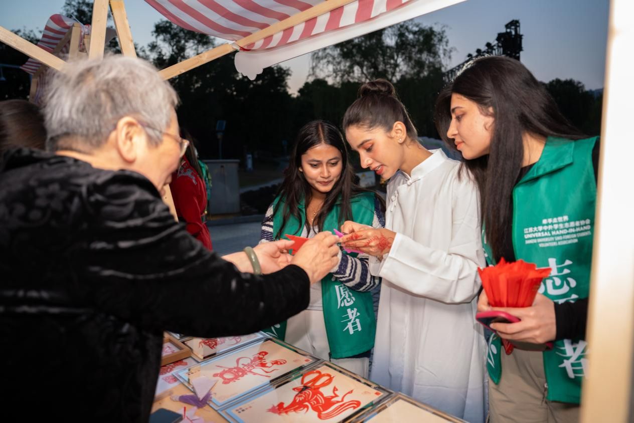 活动现场还设置了非遗文化集市,集中展示了泥塑、面塑、剪纸、泥叫叫、拓印、绳结编织等传统手工艺项目,并设有汉服体验区。六位非遗老师现场演示教学,吸引众多中外学生驻足体验,感受中华优秀传统文化的魅力。(海外教育学院)