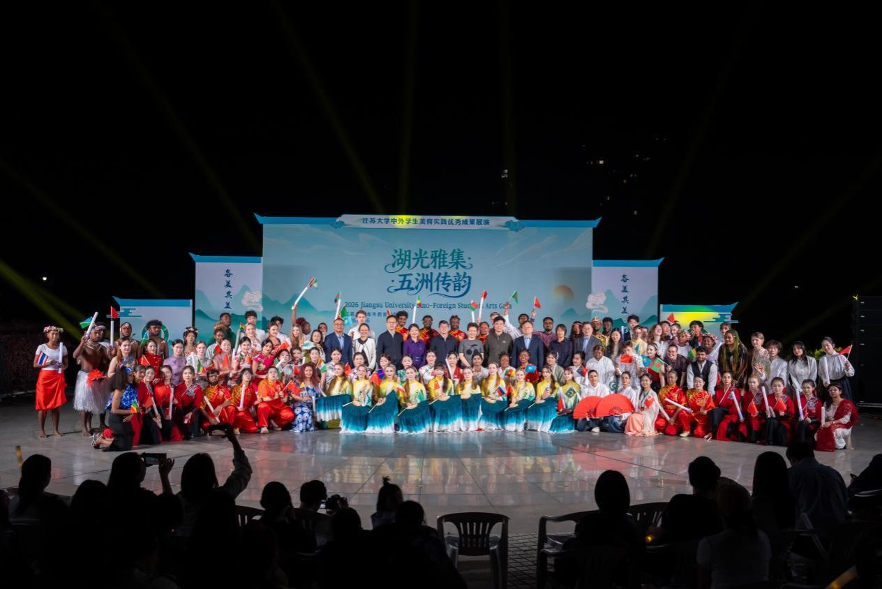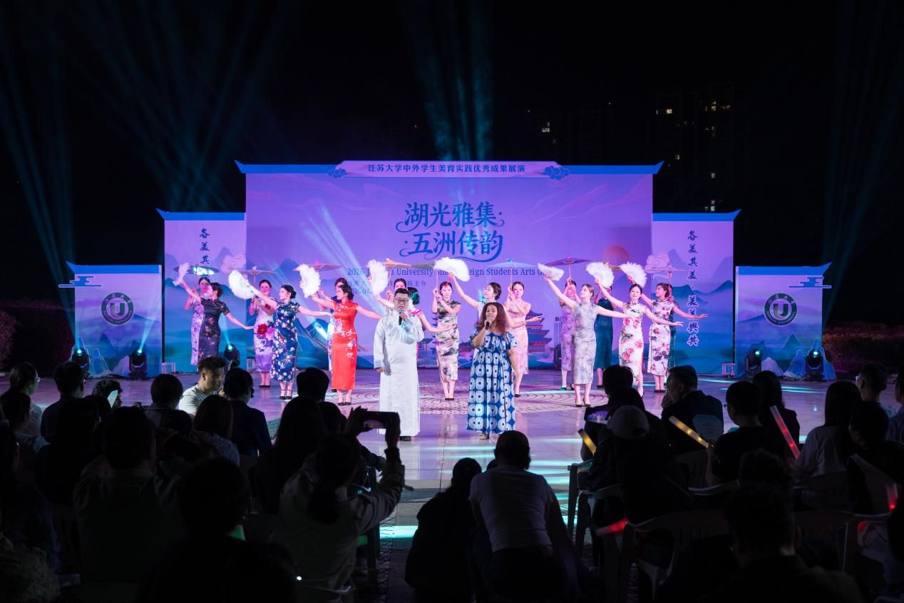 4月26日,江苏大学中外学生美育实践优秀成果展演在静湖举行。教育部国际合作与交流司二级巡视员席茹,中国教育国际交流协会副秘书长于洋,江苏省教育厅副厅长杨树兵,江苏大学校长邹小波、副校长陈峰等领导嘉宾出席。来自全国28个省(区、市)的100余所高校代表,我校中外师生共300余人观看了演出。